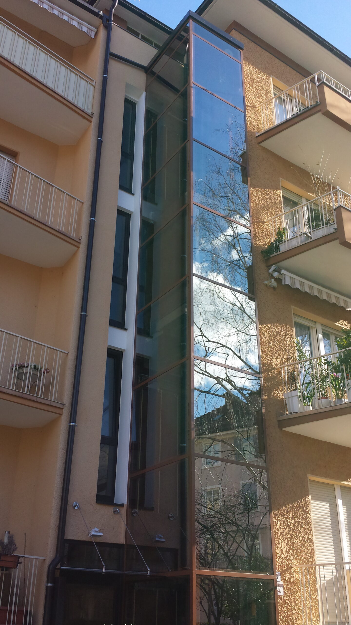 The glass panels are mounted on the external side of the main structure, secured by glazing beads equipped with seals and PDM profiles, ensuring high resistance to water infiltration. These retainers can be made of galvanized sheet metal in RAL colors or stainless steel.