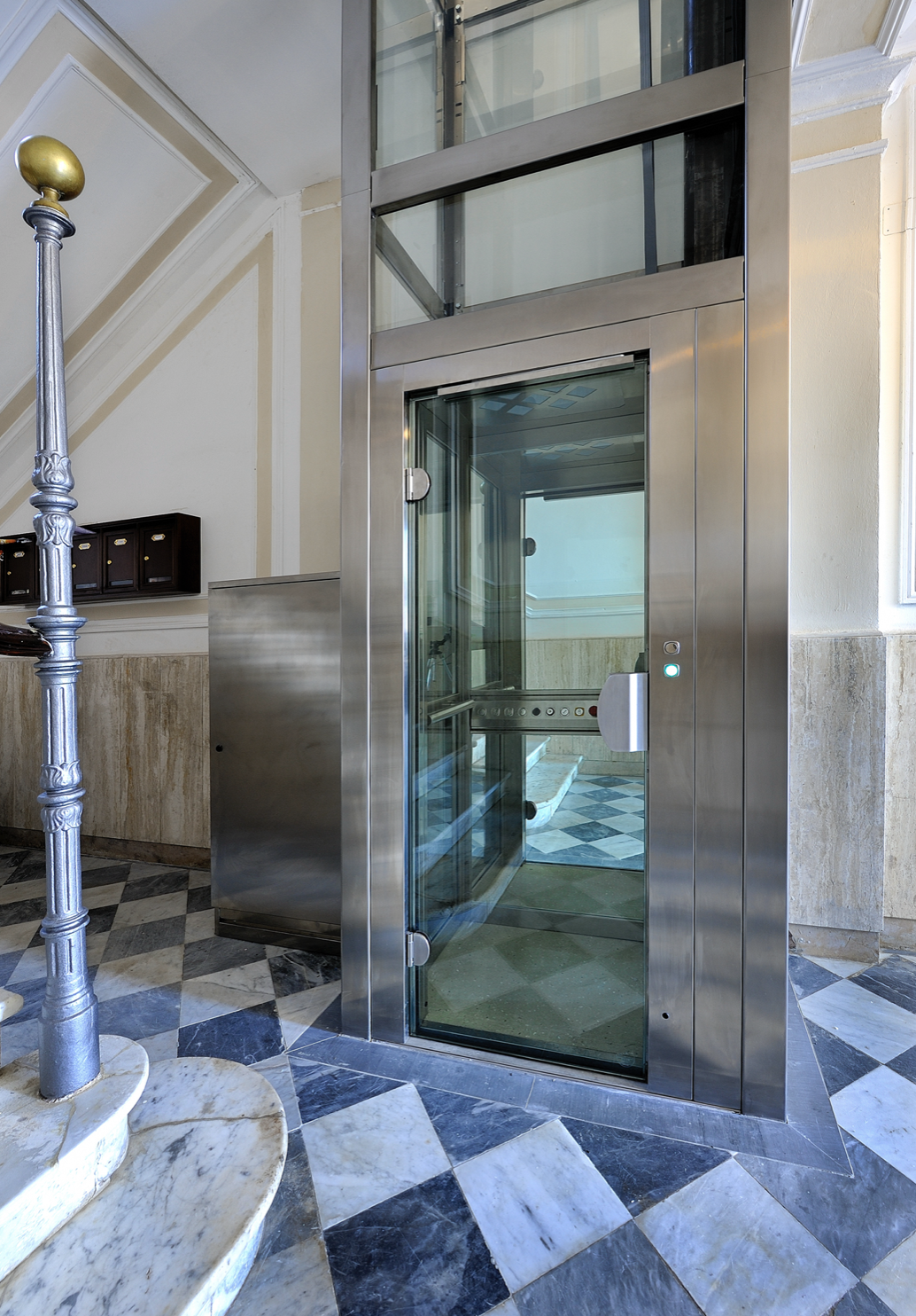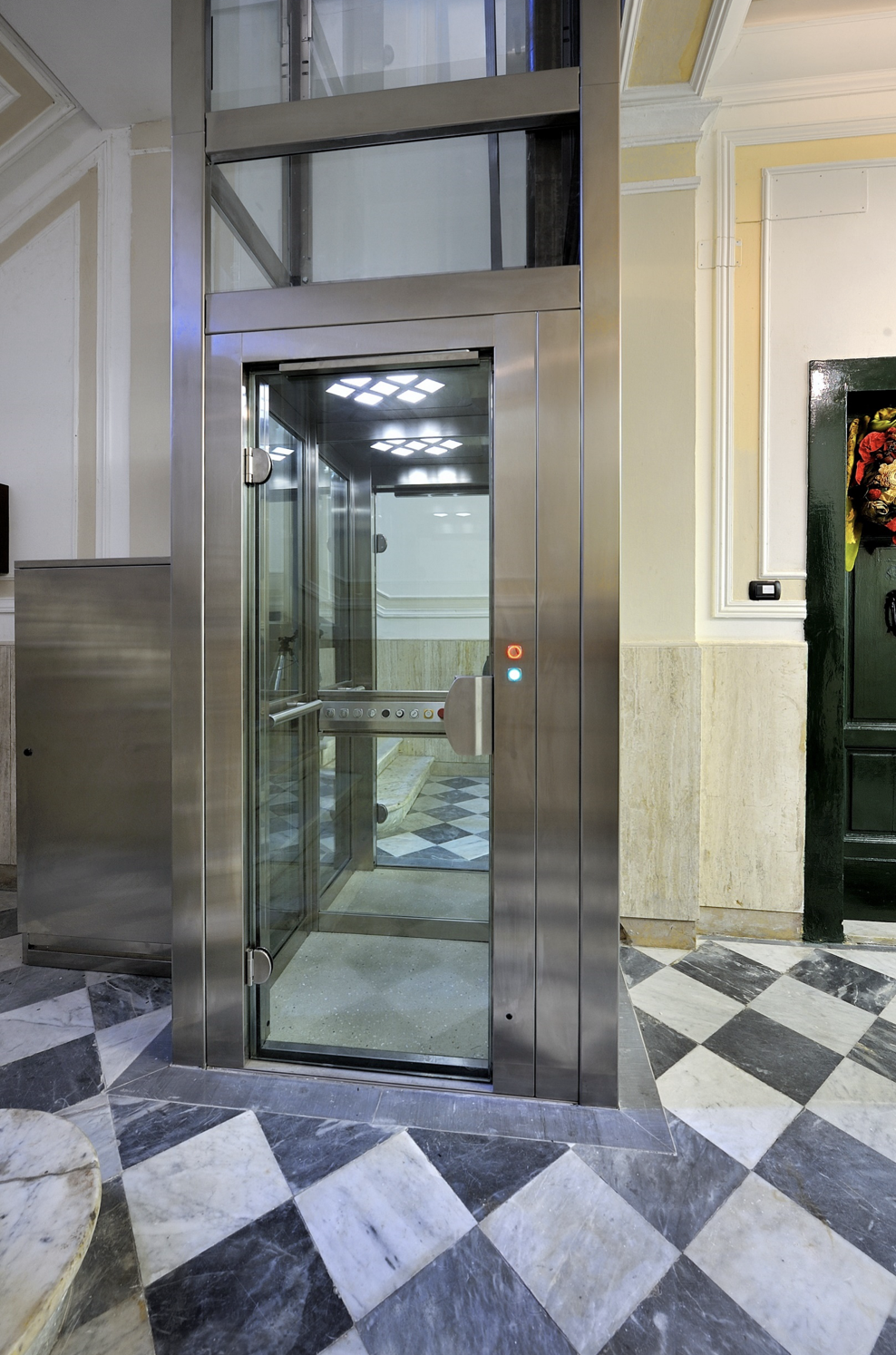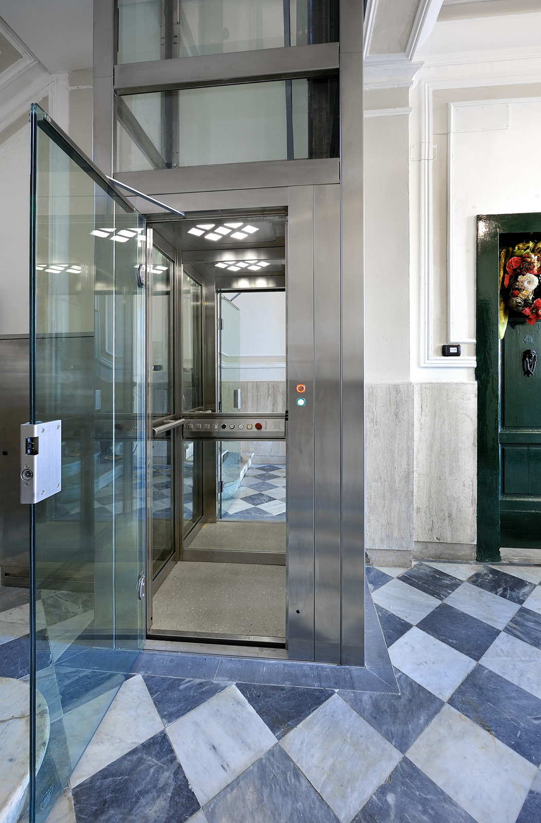 La struttura VFI mantiene la propria costante estetica sia interna che esterna concede un alto grado di flessibilità senza compromettere l’assoluta qualità e l’alto grado di design con finiture in RAL e INOX BA e SB. Innovativa, di notevole effetto, adatta ad ospitare ascensori o piattaforme elevatrici, permette la tamponatura in cristallo o pannello dall’interno vano, per ottenere una finitura liscia. L’estetica esterna risulta quindi con tamponamento incassato, per un risultato finale molto armonico. Adatta per essere collocata sia in esterno che interno.