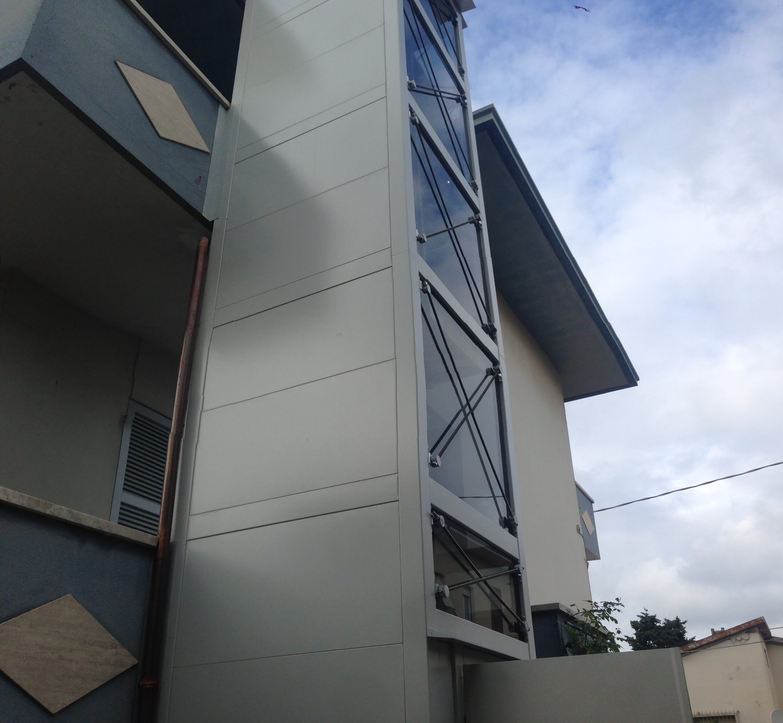 La struttura VFI rappresenta il risultato concreto di progettazione strutturale professionale e curata. Mantiene la propria costante estetica sia interna che esterna e concede un alto grado di flessibilità senza compromettere l’assoluta qualità e l’alto grado di design con finiture in RAL e INOX BA e SB. Innovativa, di notevole effetto, adatta ad ospitare ascensori o piattaforme elevatrici, permette la tamponatura in cristallo o pannello dall’interno vano, per ottenere una finitura liscia.